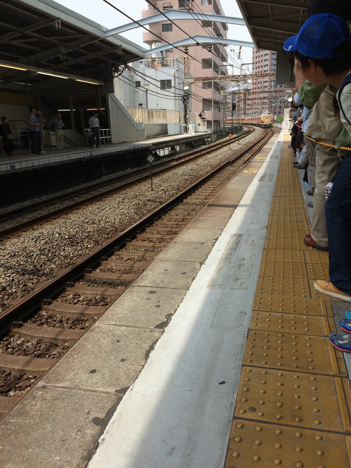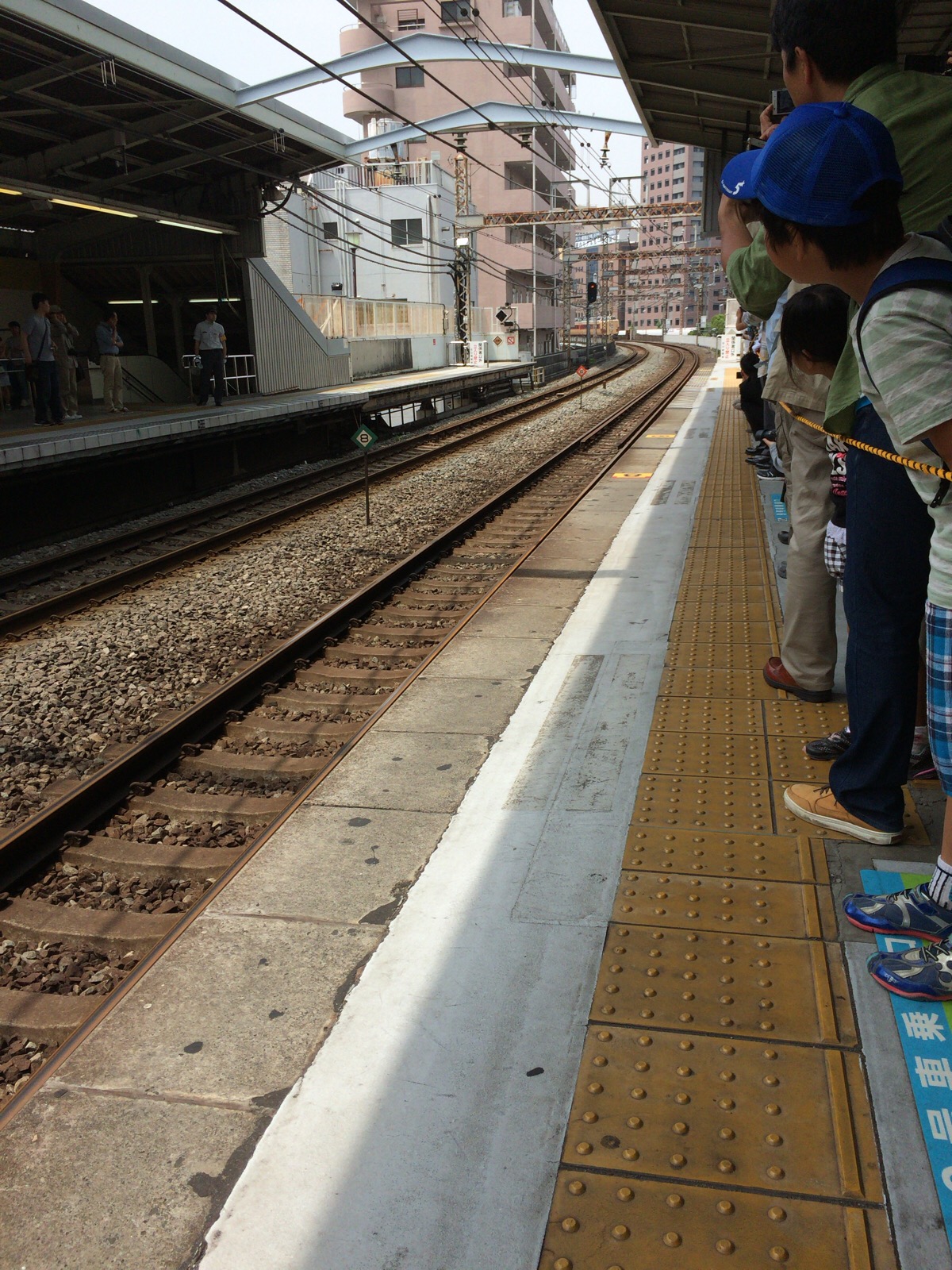 電車が来る前は、鉄道オタクが写真撮影等で前に出すぎないようにロープで規制が入りました。